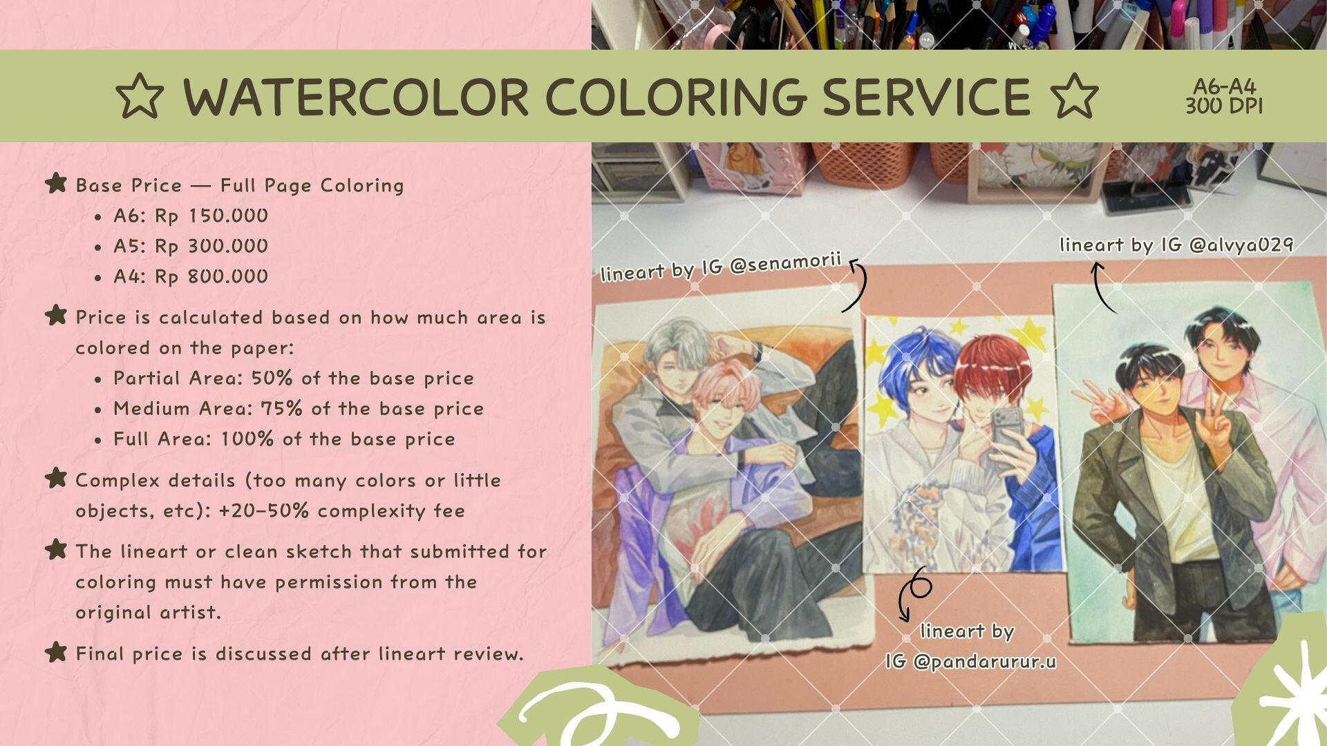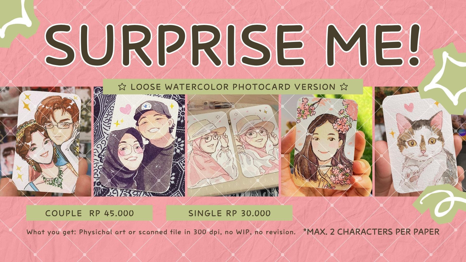 Finished art will be sent via e-mail. Format: PNG for Digital Art, Scanned Image for Watercolor Art.