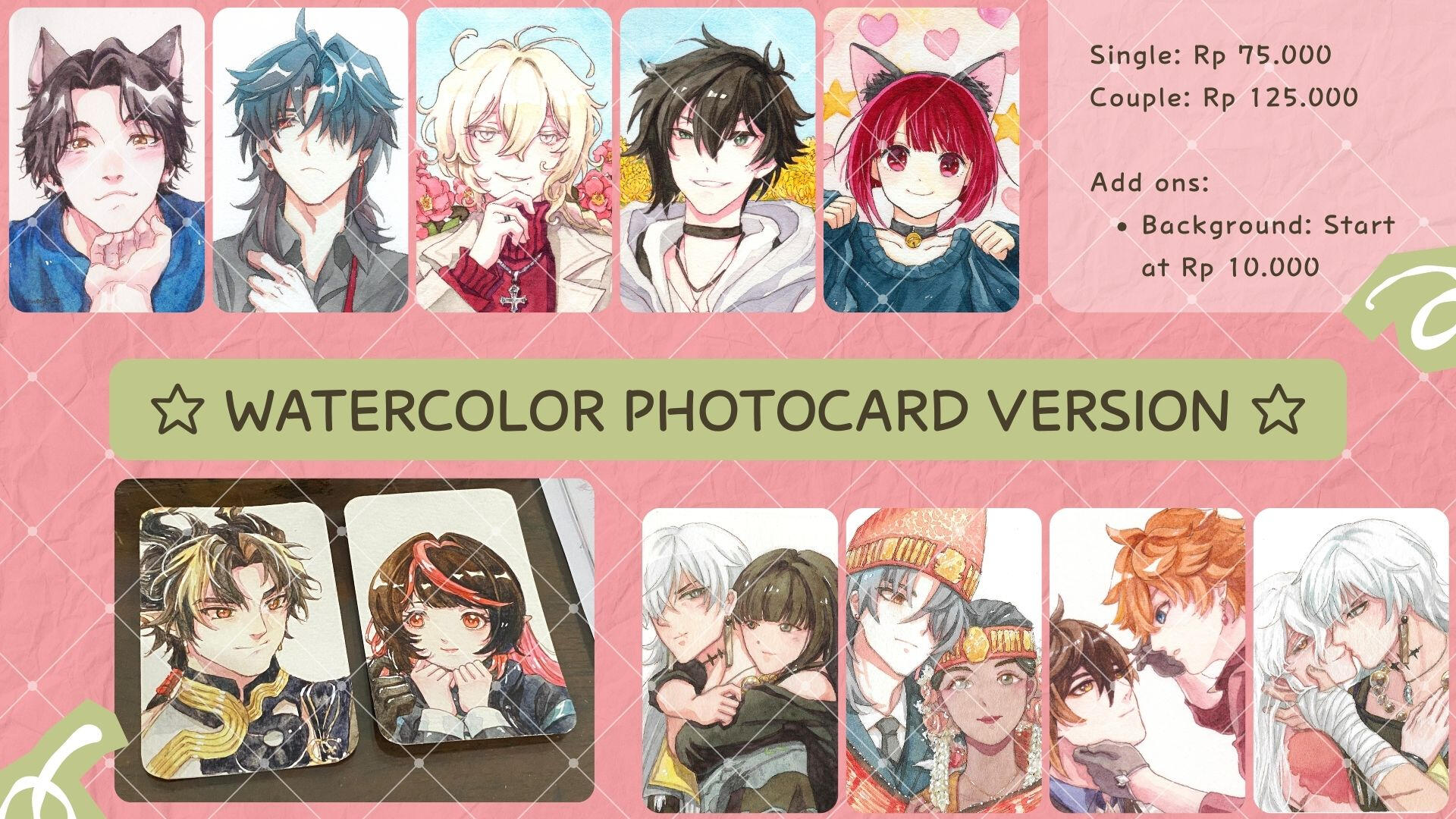 The payment in local Indonesian bank transfer. Payment should be done (accept Down Payment 50% or Full Payment) after I sent you the preview of the progress. For international/global, I only open commission in VGEN and KO-FI for safer transactions.